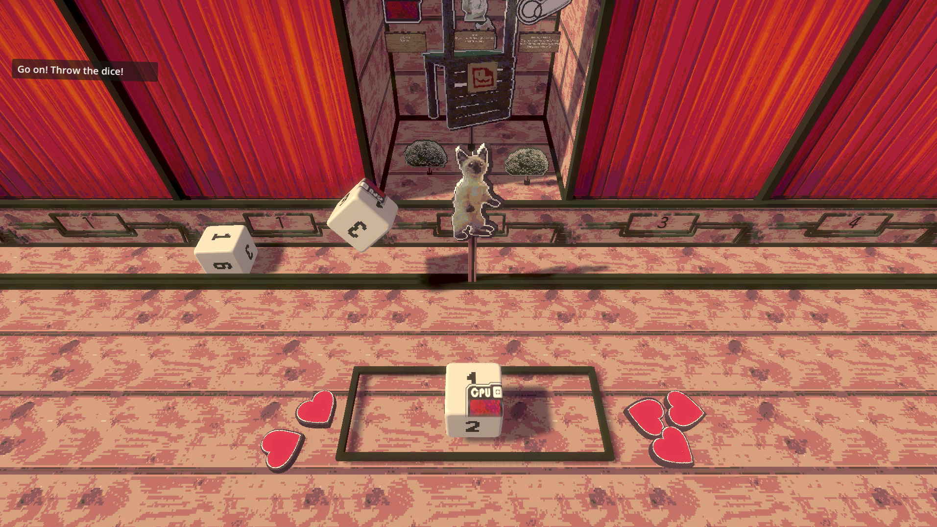 Use your dice to get as far as possible on the board. Keep in mind that enemies might try to stop you. You can add stickers to your dice to enhance the value you get from them, like a probability of multiplying the value of the face you place it. The effects of the stickers will be applied in a sequential manner, so keep that in mind. When you encounter an enemy, you will roll the dice, and the effects will be applied. If the value you get is higher than the HP of the enemy, you won, if not, you lose one HP.